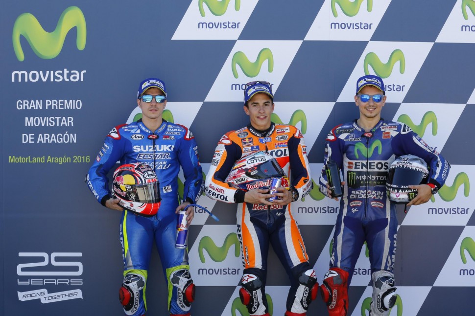 Марк Маркес может здорово укрепить позицию лидера, если окажется впереди Росси и Лоренцо на финише. Целью Росси является финиш впереди Марка, но в сложившейся ситуации многое определит хороший старт. Впрочем, в Арагоне Росси не слишком везет — он может поостеречься от слишком рискованных действий на этот раз.